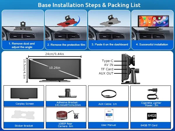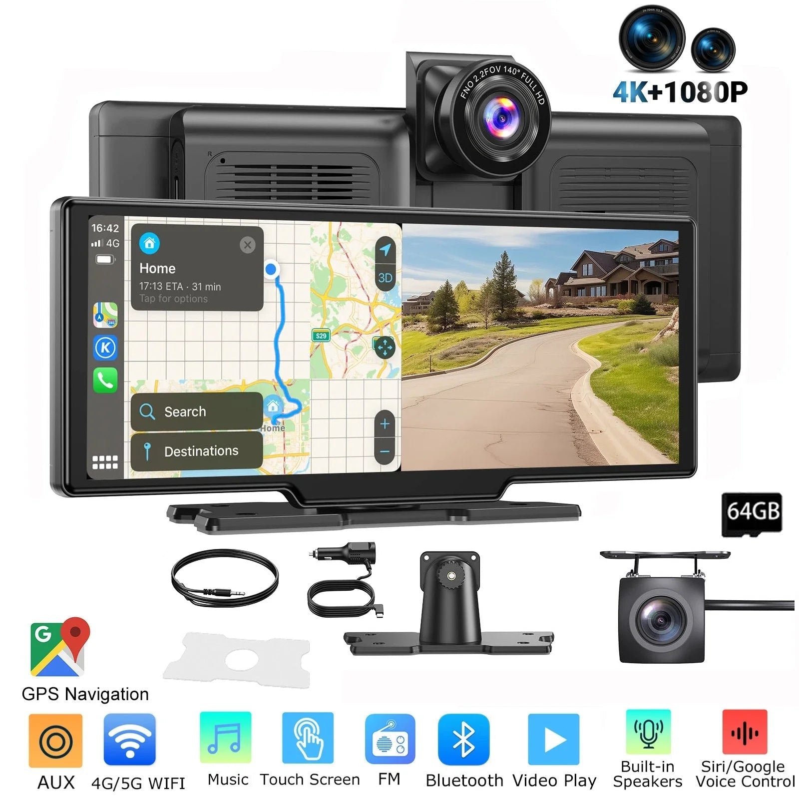Upgrade your car with our 10.2” Smart Carplay with 4K Dash Cam and Reverse Cam — a powerful 3 in one combination of crystal-clear recording, seamless smartphone connectivity, and modern touchscreen control. Whether you’re navigating traffic, recording scenic drives, or parking safely, this all-in-one system keeps you connected and protected.